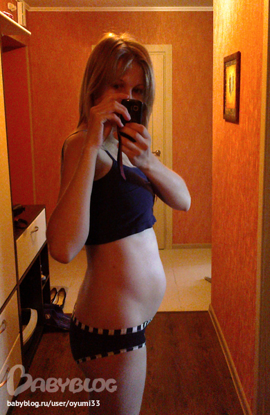 Только недавно я переживала, что не растет животик, а буквально за неделю пуз выкатил во всей своей красе, удивив своей стремительностью роста мужа и коллег по работе. Вот такие мы сейчас (и это натощак!):