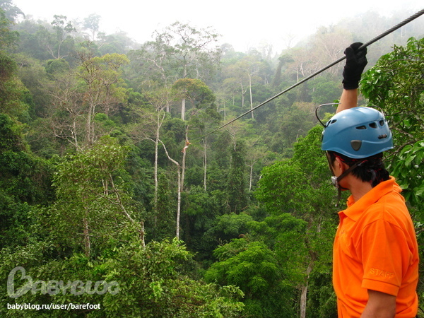 Тут сделаю коротенькое отступление. Поездки у нас всегда проходят очень активно, тюлений отдых - не про меня. Так и в этот раз мы сменили 6 отелей в разных местах, облазили все запланированные places of interest и завершили наше путешествие «Полетом Гиббона», на который поехали из Бангкока (на фото - один из самых длинных этапов (всего их 23) - 300м, посреди пути тебя, кажется, «встречает» дерево.. а конца пути и не видно! Собсно, мАААленькая фигурка в центре кадра- это я))) В общем, проверили и себя, и ребенка на стрессоустойчивость)))