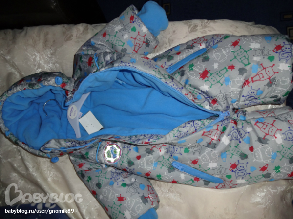 Мы в таком ходили и осенью и зимой, я одевала трикотажный слип и флисовый костюм, а когда было сильно холодно сверху укрывала байковым одеялом в 2 слоя поверх комбеза... Правда в мороз до -20 градусов максимум час гуляли.