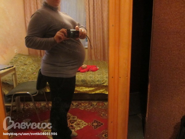 УЗИ не делала недели 4, так что не знаю какая она сечас, судя по пинкам она занимает весь живот))). Рост у меня маленький 153см. места мало, живот и в первую Б как дирижабль был и сейчас)). Я надеюсь родить пораньше, первую родила на 37 неделе, 3350гр, 53см, на метр меньше меня)). Мне говорили что крупная будет, хорошо не доносила а то все 4 кг было бы, куда мне такое))).