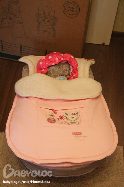 Приданое для малышаПривезли мне наконец то конвертик Deux par Deux для автокресла. Такой мимишный. Мне очень нравится. Сверху ткань непромокаемая, а внутри какая то "флисовая овчинка". Тепленький такой. И зимой хорошо и весной.