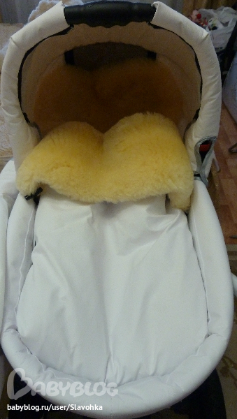 Наш овчинный конверт, в тон коляски из белой эко-кожи. Можно сделать просто ковриком) Такой мягкий-мягкий) Бусинка в восторге)))))))