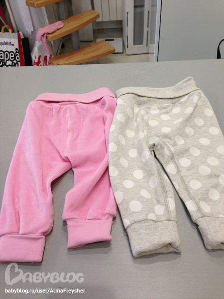 На второй фотке пара штанишек (розовенькие и серенькие в белый горох) я тоже вчера такие купила ))))
