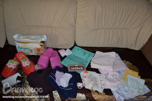 - одежда малышке: 2 пеленки - фланелевая и ситцевая, распашонка, ползунки, царапки, 2 чепчика и конверт.