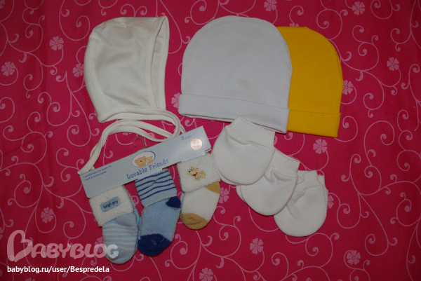 Приятная мелочевочка: чепчик Choupette, рукавички mothercare, шапочки из Детского мира, носочки - Дочки-сыночки.