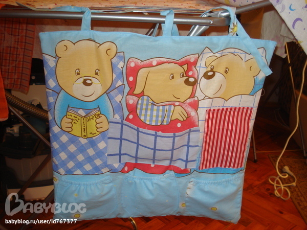 Приданое для малышая вчера решила пошить кармашек для мелочей на кроватку. вот что получилось...