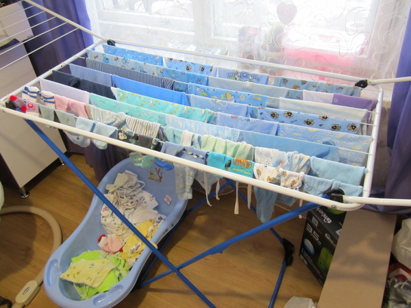 Ооооо))) как непривычно на голубенькое смотреть))) но мне скоро тоже это предстоит))) я с дочкой прям балдела от завешенных детскими вещами веревок)))) а потом еще гладить и укладывать все))) щас вот коляску купили, так я уж поводы придумываю зачем мне ее выкатить из угла надо)))