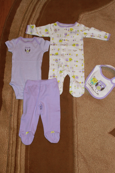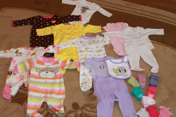 Приданое для малышаСегодня наконец то получила посылку из Америки с carters.com. Готова была скупить там все!! Все вещи безумно красивые). Но так как наши мелкозаврики растут очень быстро, кое что заказала на новорожденного, кое что уже на постарше). Конечно кое что есть и из старых вещей, которые нам отдали, ну все равно большинство вещей, как я считаю, должны быть НОВЫЕ! Сегодня же все постираю, поглажу...и думаю, что 16 числа отмечу свой день рождения и буду собирать сумочки в роддом). Докупить осталось все по мелочи). А так для нашей малышки уже все готово) Колясочка на балконе ждет не дождется. Лежит в углу в пакете комбинезон-трансформер. В котором кстати мы и планируем выписывыться) (он делается конвертом, п отом можно пристегнуть ножки))) Остался месяцок. Чувствую к рождеству мы планируем родится) Было бы здорово) Уже с нетерпением ждем с мужем нашу крохатулечку)) А пока похвастаюсь нашими обновками) Думаю мы будем самыми модными и красивыми в нашем районе)))))