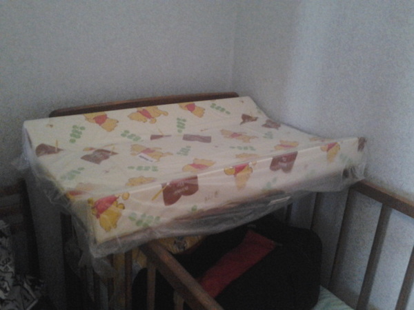 Мы купили досочку для пеленания, она кладется на кроватку. Мягкая, с бортами, перепеленала - убрала. В наших "квадратах" столики и комоды - недопустимая роскошь