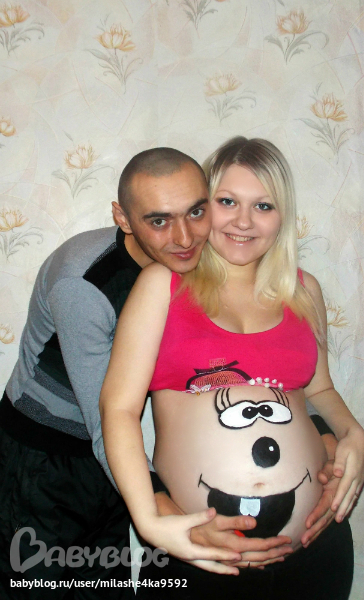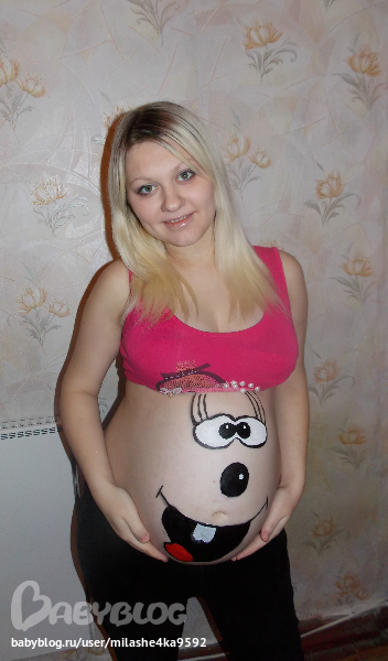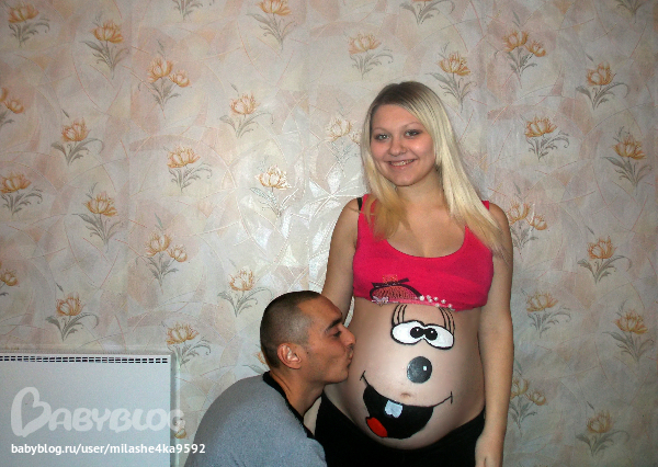 А вчера с мужем решили нарисовать на пузике...Такое интересное занятие,смеху было))