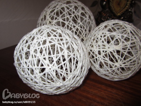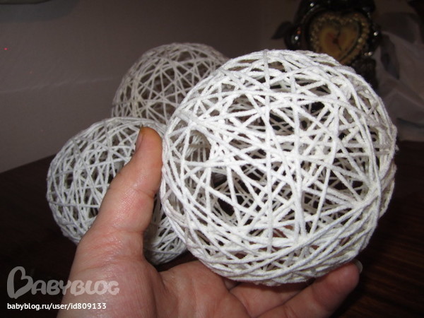 4) обмотав положите его куда-то, пусть высохнет,( я на ночь оставляла), утром попробуйте если высох, иголкой проколите шарик, шарик лопнет, а вот такая конструкция из ниток останеться.