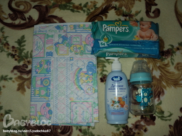 Клеенка у нас есть простая белая, решила еще купить красивую))) Бутылочку купила старшенькому, но он не стал из нее пить, будет теперь малышу)))