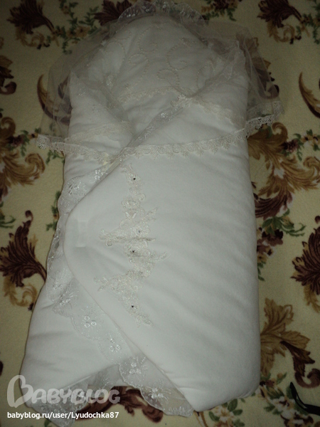 Это одеяло-конверт на выписку, напоминает мне свадебный такой конверт, из-за цветочков)))