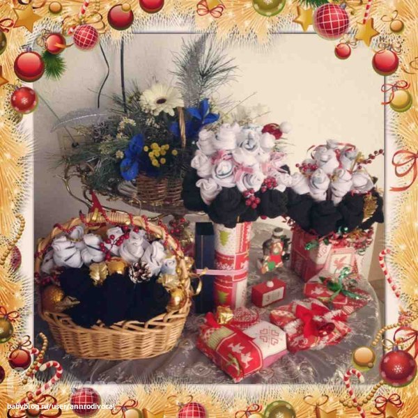 А вот подарочки)Любимым мужчинам букеты из носков)))САмому любимому еще ручку подарила ))
