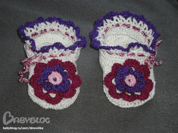 Как мило! Какая ты молодец!!! Я думаю это будут самые любимые пинетки,потом оставь их,расскажешь когда кроха большой будет,как ты старалась!!!