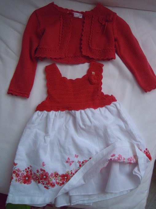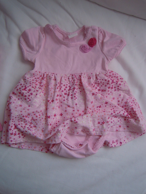 а вот это не надели ни разу. на вид красивое. но. я там специально отогнула юбку чтобы видно было. внизу нижняя юбка из убойной стоящей колом ткани. для новорожденного не самый лучший вариант, на мой взгляд. на ощупь очень жестко и неприятно. плюс верх совсем открыты, а внизу эта ужасная юбка. и непонятно на какую это погоду. размер 62. мне кажется, что в год такое в самы раз. а на малышку - в жару в нем жарко, а когда стало прохладнее - в нем прохладно. не знаю - оставить на память или продать. нам его подарили.
