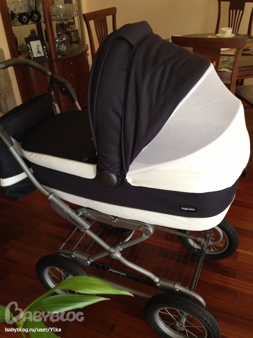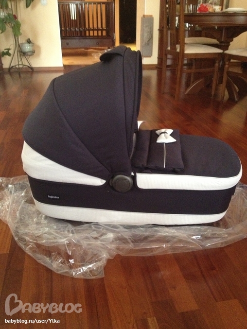 Коляска очень понравилась, есть даже приятные сюрпризы, такие как сетка в капюшоне, нигде в описание этого не было, и в прошлогодних коллекциях этого не было, девочки писали. В комплекте, сумка, внутри пеленальный матрасик, плюсом идет теплый конверт для малыша, так как коляска идет как зимний вездеход. Но с нашим климатом этот конверт подойдет и на весну-осень. Коляска Inglesina Sofia Elegance 2013. Думала будет с классическим шасси, но пришла со спортивным, что в итоге не расстроило, а порадовало. Муж сказал, что то шасси, которого я ждала, вообще не то :) Ну я ему доверяю. Катать и качать ее очень приятно, собирается, складывается все очень легко, пружинит прекрасно. Изголовье в кроватке регулируется из вне до сидячего положения. Система вентиляции дна открывается одной кнопкой, ну это на лето. На это шасси можно установить автокресло и прогулочный блок. Автокресло ждем расцветки нужной, прогулочный блок будем заказывать позже, как попробуем коляску в деле. Сама люлька служит также автолюлькой, заказали дополнительно систему Kit Auto, система ремней для установки люльки в машине поперек движения, малыш крепится поперек животика. В общем в дальние поездки будем ездить в люльке, а в магазины, в автокресле-переноске. Вроде все написала :) А в пятницу приехала с работы, а меня ждет практически собранная кроватка :)