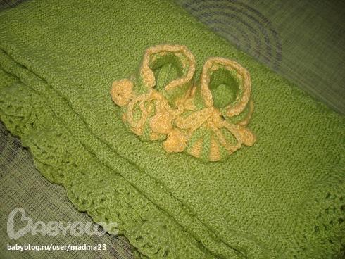 Приданое для малышаЯ конечно далеко не ас в вязании, но наличие свободного времени и приглянувшиеся схемки сподвигли меня на Пледик в колясочку и пинеточки для нашей крохи! Т.к. пол пока нам не известен - цвет унисекс))) Кому интересно, прошу под кат...
