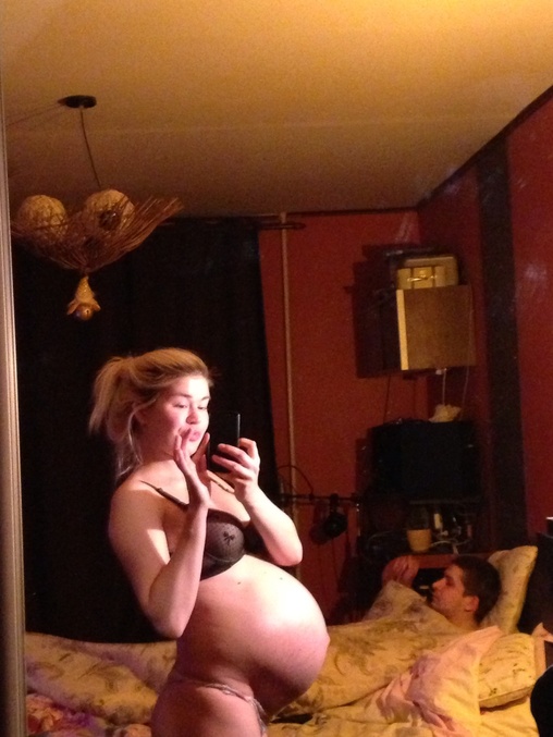 Живот огромный и тяжелый ,крошка моя уже очень ощутимо толкается..пару раз даже больно было...Кисонька моя,тесно ей там(((