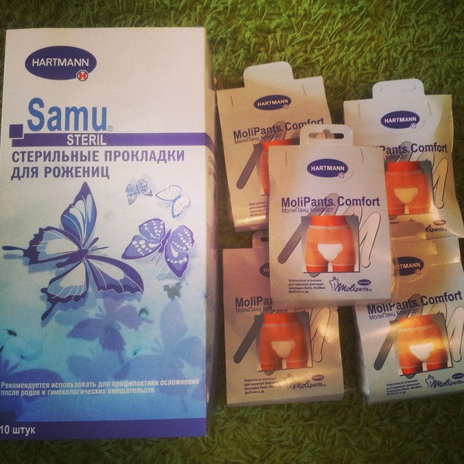 5. прокладки для рожениц samu 1 уп. + одноразовые трусики hartmann 5 шт. (их можно стирать, но я этого делать не буду)