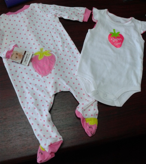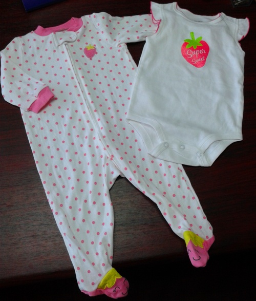 На фото слипы и бодик Картерс, футболка с ананасом JOY, думаю все можно заказать через инет, но я покупала у частника, тут тайцы "барыжат")) детскими фирменными вещами не дорогими. Например слипы мне достались 1шт.-100руб.(в переводе на наши деньги), бодик-80 руб. джинсы-120 руб. бутболка-79 руб.