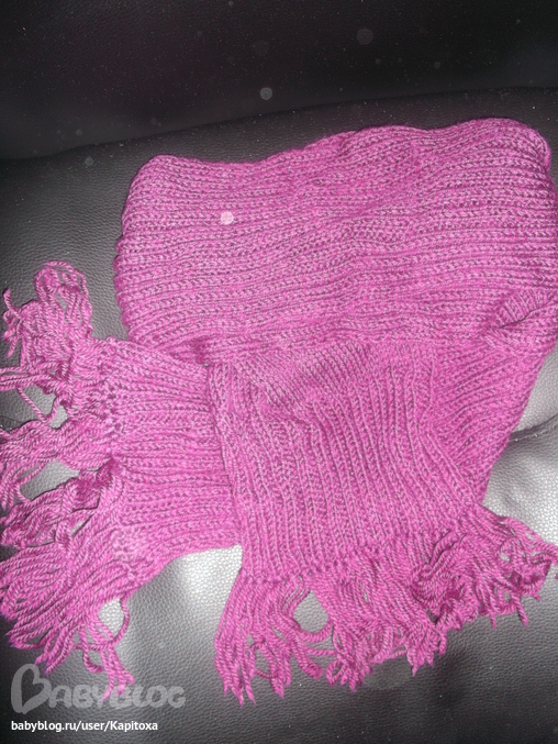 ВОт мой обычный шарфик,он с рюшами (я че-то помпоны не нашла, подарила видимо), но это тоже удачная работа в плане ровности) Фото не айс конечно)