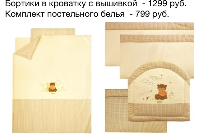Да, у меня такой же! Только орнамент другой (там карета вышита, оказалось), и цвет молочный. Качество обалденное! И на фото гораздо хуже выглядит, чем в жизни, правда ведь?) Самое странное, что на ББ об этой фирме ни слова. И в инет магазинах их не видела, уж сколько просмотрела! Голову сломала, какой набор брать в кроватку. Ни один не нравился. А в Персее совершенно случайно наткнулась на него, и продавец очень посоветовал брать именно его, сказав, что пользуется популярностью и отметив высокое качество)