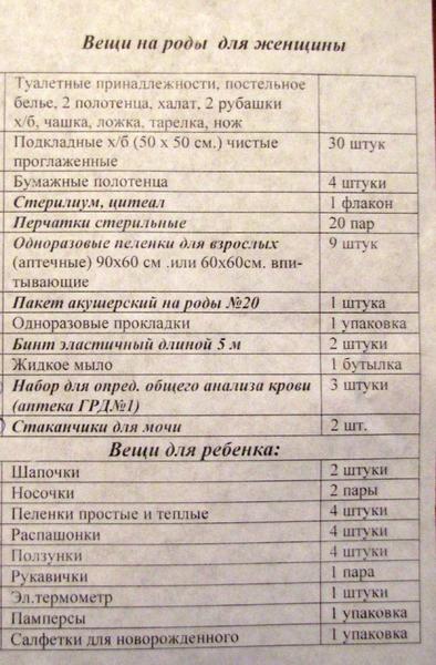 Да нет, у нас тоже список трёхэтажный. В родблок тапочки, сотовый и воду. Но кроме этого ещё 2 сумки - одна в послеродовую маме, а другая ребёнку всё это тоже нужно заранее собирать и получается целая гора.
