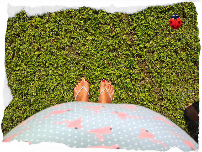 Растяжек пока нет, что радует. Отеки стали иногда появляться, но сейчас у нас стоит жара, и я много пью воды, поэтому часам к пяти вечера отекаю. Но я нашла отличный способ - залезаю в прохладный бассейн с сынишкой, и мы там плещемся. Отеки снимает как рукой.
