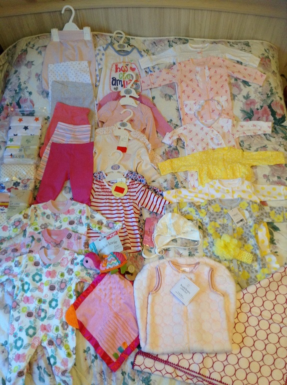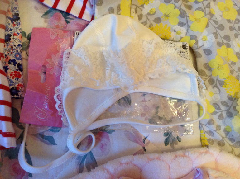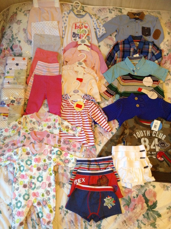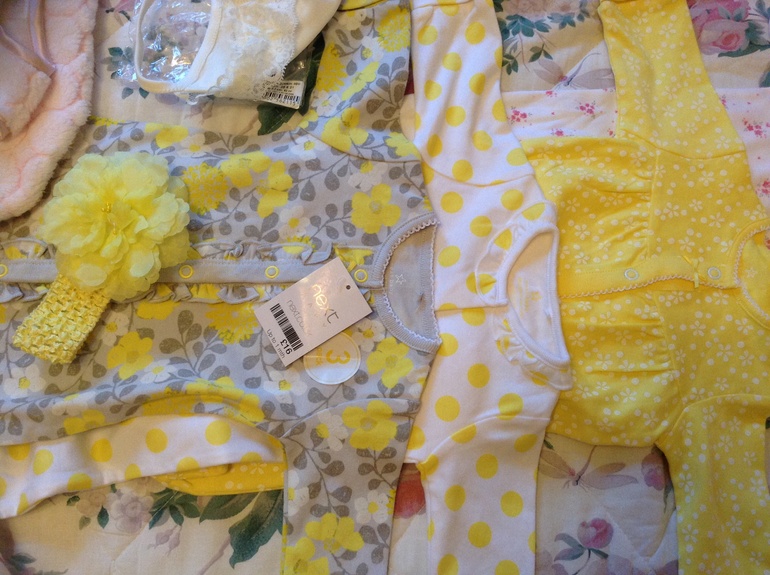 Может и рановато еще, но понемногу начала покупать, в общем много и не надо так как много от сына осталось всякого белого, бежевого желтенького, но новое-то тоже хочется, рюшечки, бантики))) А тут еще распродажа в Маркс энд Спенсер, мой любимый магазин;) в общем сорвалась вчера)))