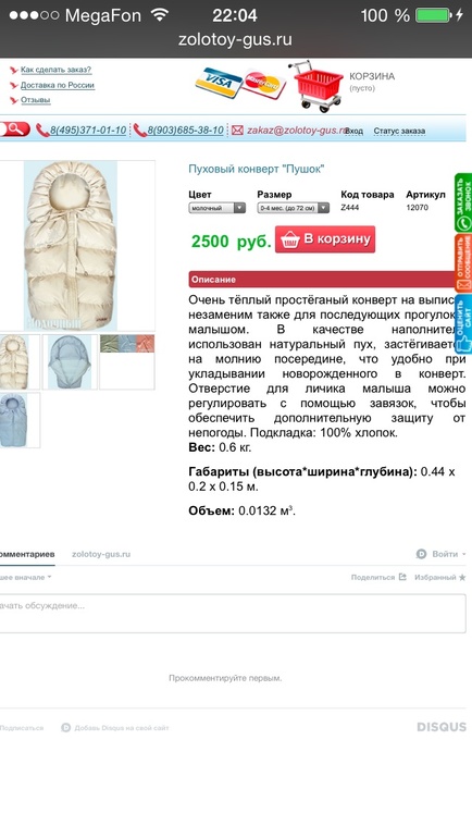 Может на сайте ошиблись в указании размеров? Узнайте непосредственно у Них в магазине, странные размеры и правда, обычно где то 90 см на 40... У Нас был очень походиц по виду, тоже пуховой, классный! Для зимы идеально!