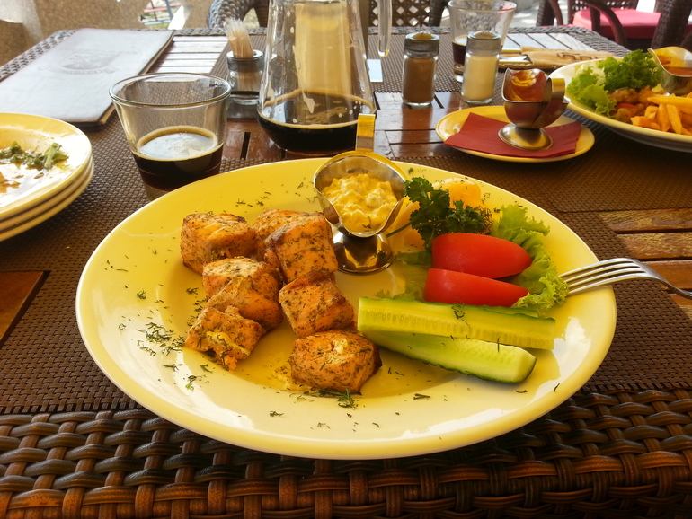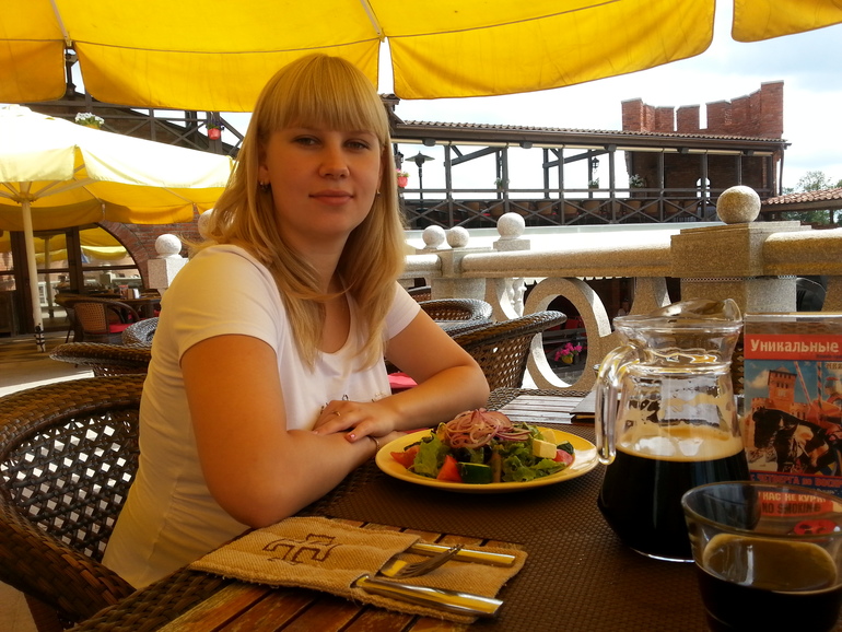 Ездили мы в ресторан, отметить это радостное событие) Ресторан называется "Nesselbeck" (кто местные, тот знает). Все в средневековом стиле, сидели мы на летней веранде, еда просто шикарная и порции большие))) Заказали салат греческий, картофель фри, шашлык из свинины, шашлык из семги и квас собственного производства, короче поели мы от пуза))) Потом еще погуляли по территории и зашли (у них же) в музей. Время провели просто замечательно, думаю, что сыночек наш тоже был очень рад