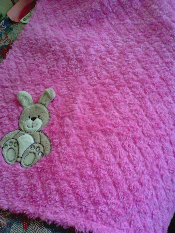 Я тащусь от него))) так хотела такой с ушками и вот моя мечта сбылась. Правда он не новый, но в хорошем состоянии , так что на эту осень - зиму нам хватит))) и пледик с зайчиком)))