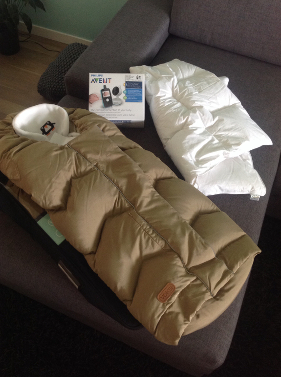 Здесь одеялко, пуховое, легкое. Радионяня с экраном, теплый конверт Voksi. Выбрали модель City. Внутри шерсть и наполнитель пух. Удобно застегивается и затягивается вокруг головы-лица.