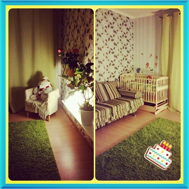 В такую милую комнату, только малыша не хватает)) очень уютно, и когда бегать-ползать начнет, места предостаточно! У меня такая жуткая изжога была во время беременности..брррр))) И живот у меня так каменел, что просила мужа по среди трассы машину остановить, чтобы я походила, подышала, и животик сразу расслаблялся..и доходила до 42 недель))) врачи паникеры))) придумывают нам всякие проблемы, которых у нас нет)))Так что родится красивый малыш, у красивой мамочки, и будет жить в красивущей комнате)))