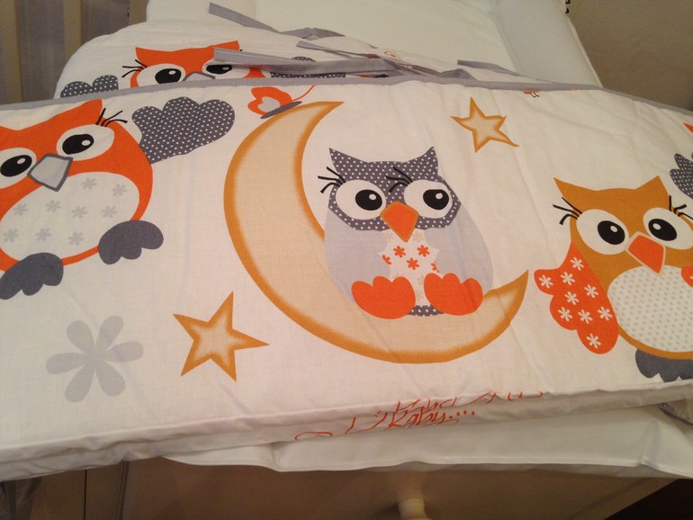 4. Текстиль в детскую. Мягкие бортики в кроватку. Увидела этих совушек и пропала) В комплекте ещё пододеяльник и наволочка, им придётся подождать годик.
