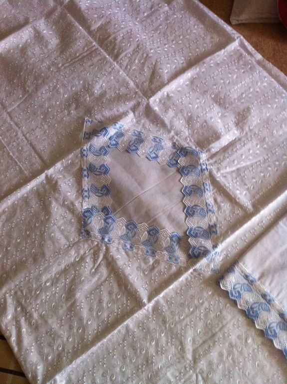 Это вот пододеяльник из комплекта, который она нам подарила. Не нравится совсем, к тому же качество ужасное! Сама на таком материале не спала бы, не то что ребенку...