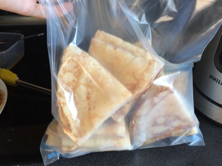 - блины и сырники. На Масленицу у нас напеклось нереальное количество блинов, объевшись которыми, я косилась на оставшуюся стопку штук в 50. А легко! Сложила каждый вчетверо, на доску с пленкой, потом в один большой пакет. И еще месяца 3 доставали по настроению по 3-4 штучки на завтрак. Сырники замораживаю до термической обработки.