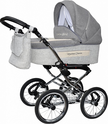 Следующей покупкой была коляска. Присматривать я начала уже давно, от выбора голова шла кругом. Очень хотела большую коляску, с большими колесами, хорошей амортизацией, чтобы непродувалась. Выбрала коляску от немецкой фирмы Stroller-B&E модель Maxima CLASSIC 2в1. Производитель заявляет, что модель разработана специально для России , коляска собрана в Польше, люлька полностью натуральная, обита хлопковой тканью, непродуваемые борта, донышко из натурального дерева, люльку можно снять и использовать как люльку качалку для сна. Надежная хромированная рама, в комплекте спальный мешок с овчиной и накидка на ножки для прогулки. Подкупило наличие магазина на Соколе, приехали с мужем, посмотрели, покатали, пощупали и сразу забрали. Для нас это еще и дешевле на 500руб вышло, хоть они и пишут на сайте, что доставка бесплатно. Потратили мы на коляску 20 400руб. Расцветка, конечно, светловата и маркая, но цвет натурального льна я просто обожаю и сразу в нее вцепилась.