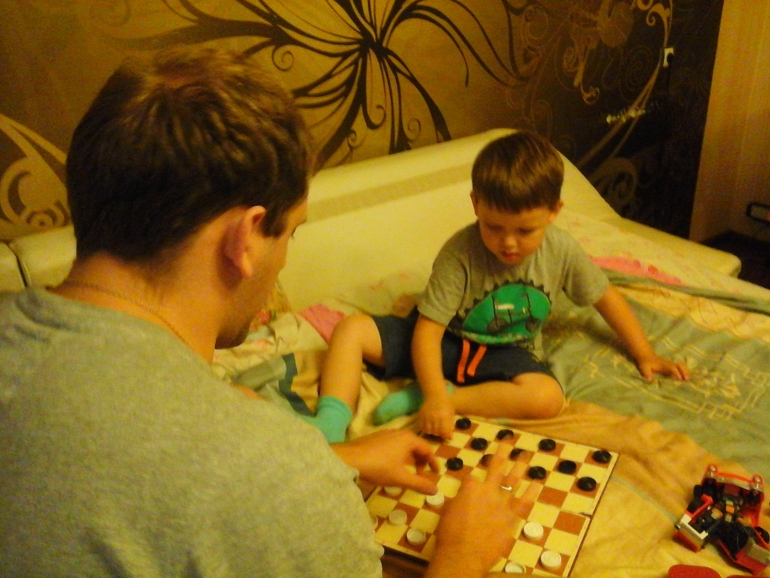 Еще новое увлечение - шашки. Это только с папой: свои правила придумывают, - маме остается только фиксировать все на фото))