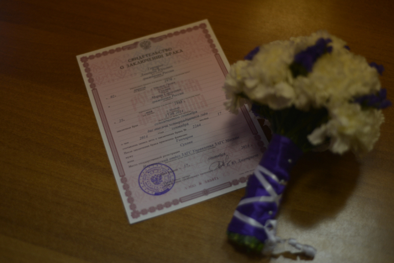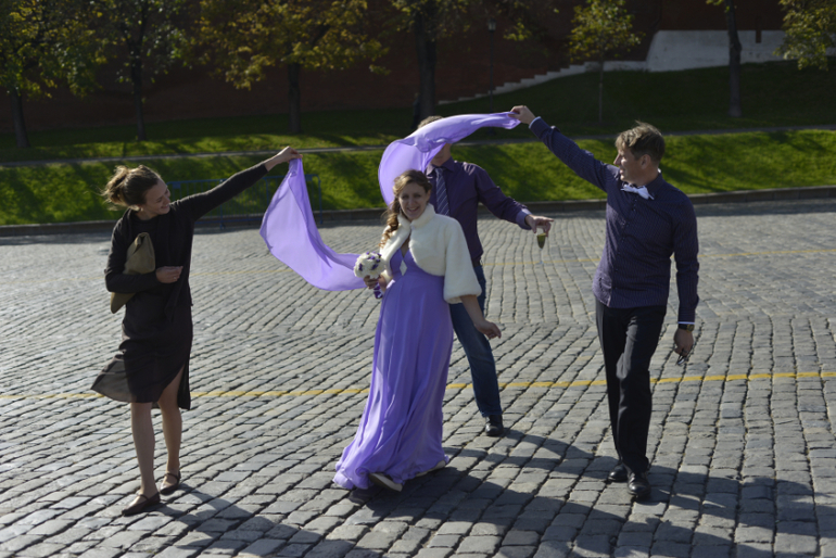 Расписались не торжественно, погуляли по пустой по-будничному, но солнечной Москве) Покатались с самыми близкими друзьями на лимузине ну постояли в пробке, конечно же,на Андропова(кто местный ЮАО поймет:)))Даже за рулем машины сестры посидела , прямо в свадебном платье)(а то ведь я одна не пила)