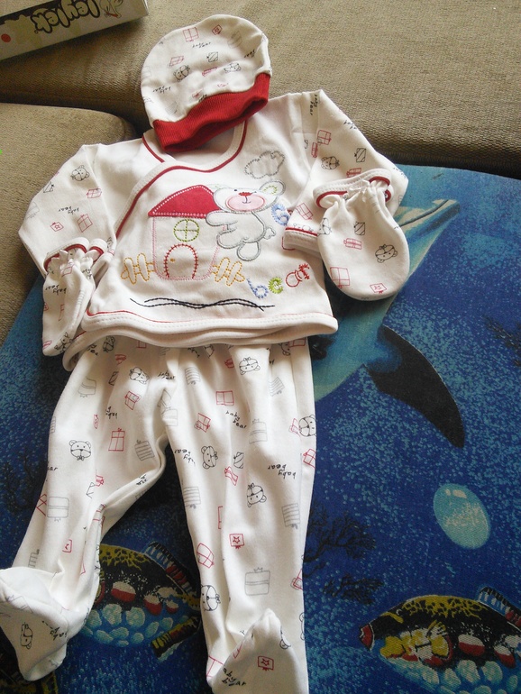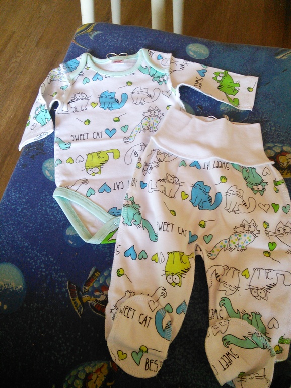 оооо последний комплектик такой классный.Моя душа сегодня тоже не выдержала пройти мимо маааленького детского отдельчика,тоже утащила несколько одежек ,только беру 3-6м уже,не буду много набирать 56р,парочку взяла а там в пеленках.