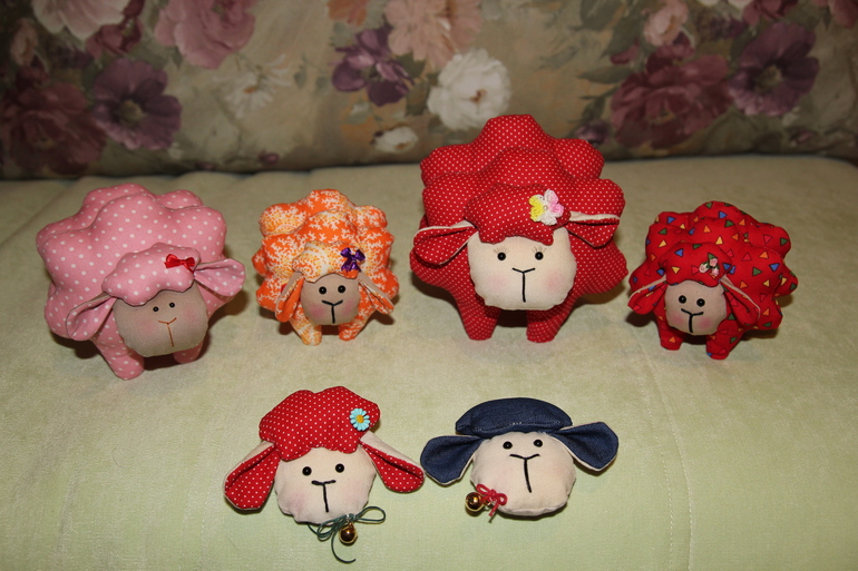 а вот мое стадо барашек))) Пойдут на подарки к НГ. я от них безума))) Рост у них 16,12 и 9см.
