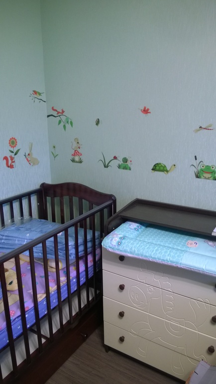 Вот еще одна фоточка - это уголок в нашей комнате для будущего карапуза. Идею наклеить наклейки почерпнула у Алины. Конечно, я все сделала гораздо примитивней, но все ж обозначила хоть немножко, так сказать)) Спасибо, дорогая, за идею!