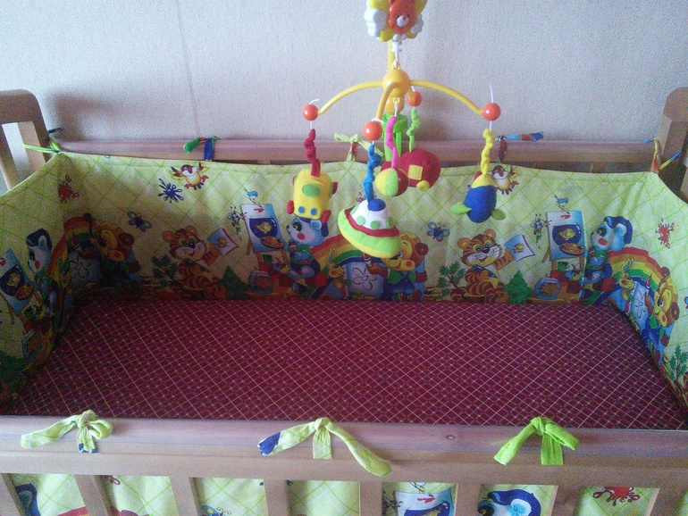 ЗаморочкиСегодня моя тётя принесла бортики в кроватку. Как вам? На простынку не смотрите, заменю потом