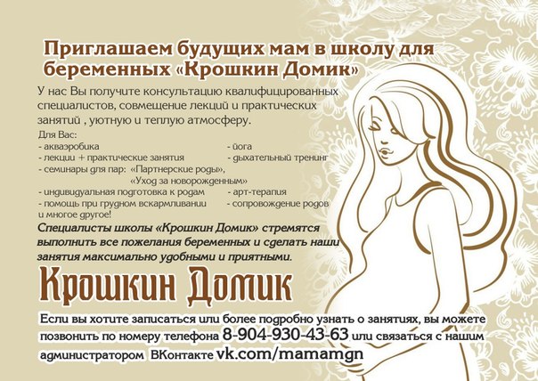 В школе работает опытный медицинский перинатальный психолог-акушер, мы сотрудничаем с педиатрами, соцработниками. Также набираем группы для занятия йогой и аквааэробикой. Занятия проходят в уютном зале, каждое занятие- чаепитие, после окончания курса - подарочки