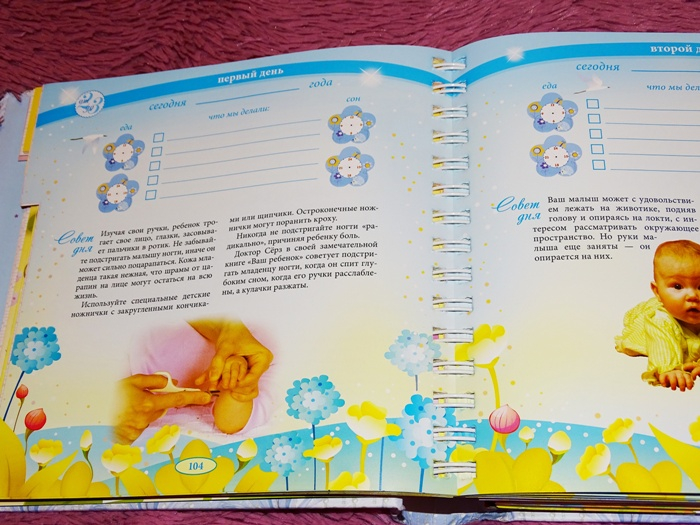 Приданое для малышаВсе же девочки, мы такие девочки! Сегодня была в книжном магазине и увидела одну чудесную вещичку. Дневник младенца от 0 до года. Так он мне понравился, что сразу купила. Может не всем по душе такое занятия, но я, помня себя еще с детства, очень люблю такие штучки. Записывать, вклеивать картинки, фотографии... В общем. покупкой довольна. Подкупили: Обалденное качество бумаги, насыщенные цвета картинок и оформления, полезное содержание. То есть это не только дневник для записей, но и еще целая энциклопедия для мам по воспитанию малышей от 0 до 1 года. Ниже фото, сами увидите.