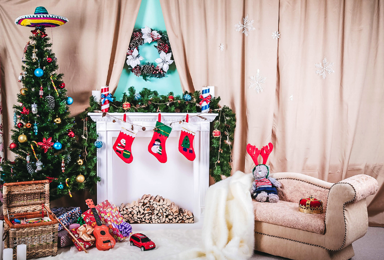 Вас ждут красивые новогодние декорации, елка, а также праздничная атрибутика в уютной фотостудии.