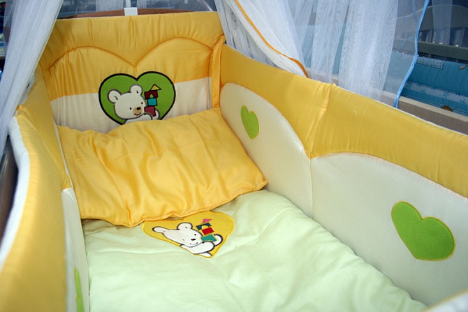 Приданое для малышаКупила комплект 7 предметов в кроватку. Такой красивый, ткань сатин, все как хотела... да еще и по низкой цене отхватила.Радости не было предела!!!
