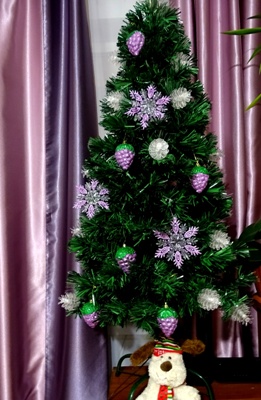 А ещё нарядили ЁЛОЧКУ! Стоит теперь красавица- радует нас разноцветными огнями)))) Осталось накидать подарочков под ))